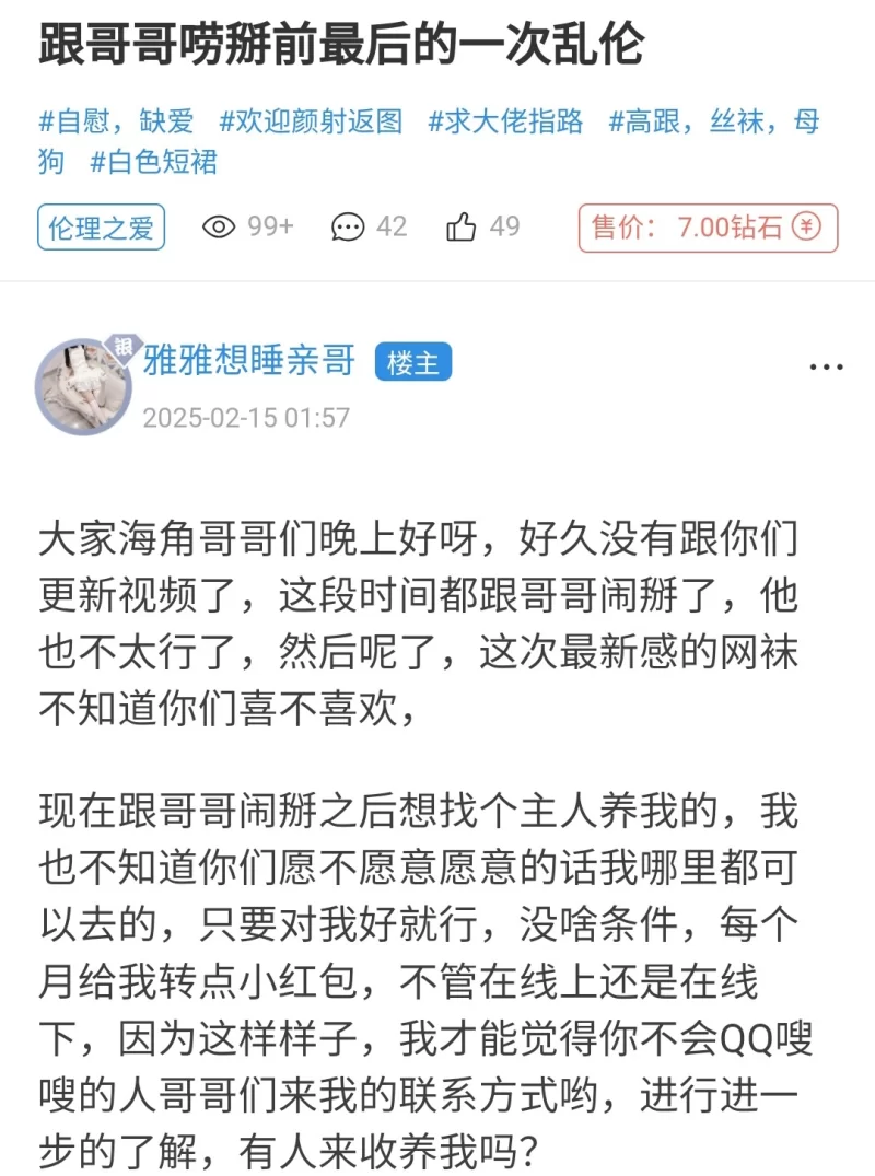 [转载搬运] 海角雅雅想睡亲哥跟哥哥唠掰前最后的一次乱伦 [1v+219m][百度盘]